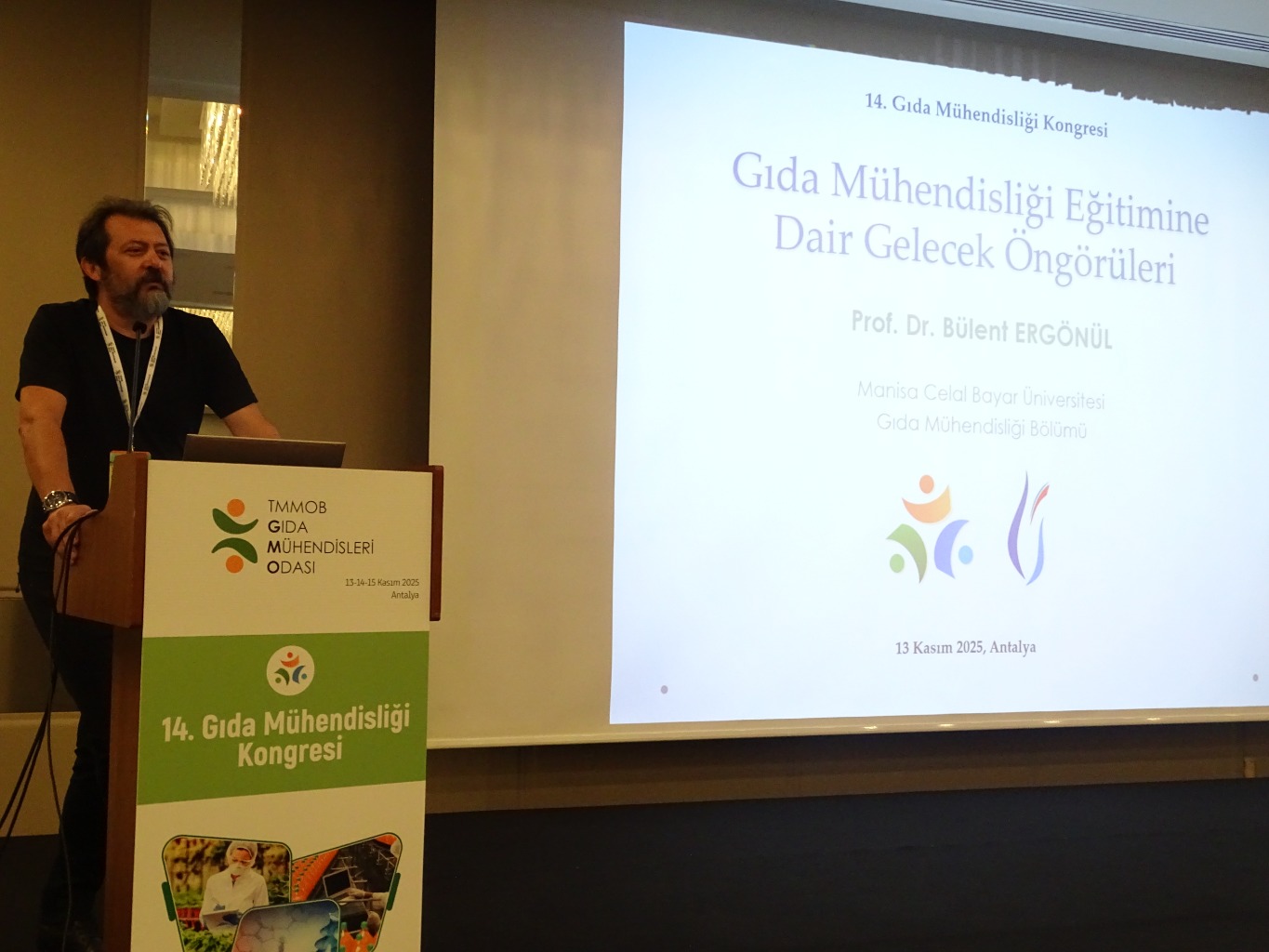 14. Gıda Mühendisliği Kongresi 13-15 Kasım 2025 tarihleri arasında Antalya'da gerçekleştirildi. Bölümümüzü temsilen "Türkiye'de Gıda Mühendisliği Eğitiminin 50. Yılı; Dğnden Bugüne, Bugünden Yarına" başlıklı panelde "Gıda Mühendisliği Eğitiminde Gelecek Öngörüleri" başlıklı konuşmasıyla Prof. Dr. Bülent ERGÖNÜL yer aldı.